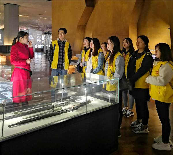 下午,团员青年来到薛家寨革命旧址。这里处于桥山山脉南端,海拔1600多米,重峦叠嶂,密林如海。青年们沿着近乎垂直的石阶,云山雾海中,抓着铁链在壁立千仞的石壁间勇攀云梯,重走红军的革命路线。“蜀道难,难于上青天!”,“红军战士不怕难,敢教日月换新天!”青年们喊着响亮的口号,在革命精神的感召下最终攀上了顶峰。接下来参观了革命时期的四个寨子,一号寨为当年陕甘边游击队一、三支队驻地,二号寨是当年的红军医院和被服厂,三号寨为军械厂,四号寨为陕甘边区特委驻地和供需仓库。四个寨子如同活化石般庄严的展示着战争年代的历史与印记。