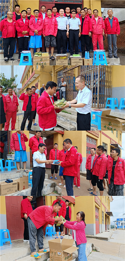 公司领导在与职工亲切交谈时,首先向大家通报了公司近段时间生产经营情况,并要求各项目部要落实好防暑降温措施及防疫措施,时刻把职工的利益放在心上,努力经营好工作及生活场所,让职工们吃的安心,干的放心。并向高温天气下仍然奋战在一线的广大职工表示衷心的慰问,同时叮嘱大家要合理安排作息时间,注意劳逸结合,在保证安全生产的同时,要注意自己的身体健康,防止高温中暑。让奋战在野外一线的同志能充分感受到公司的关怀和牵挂。